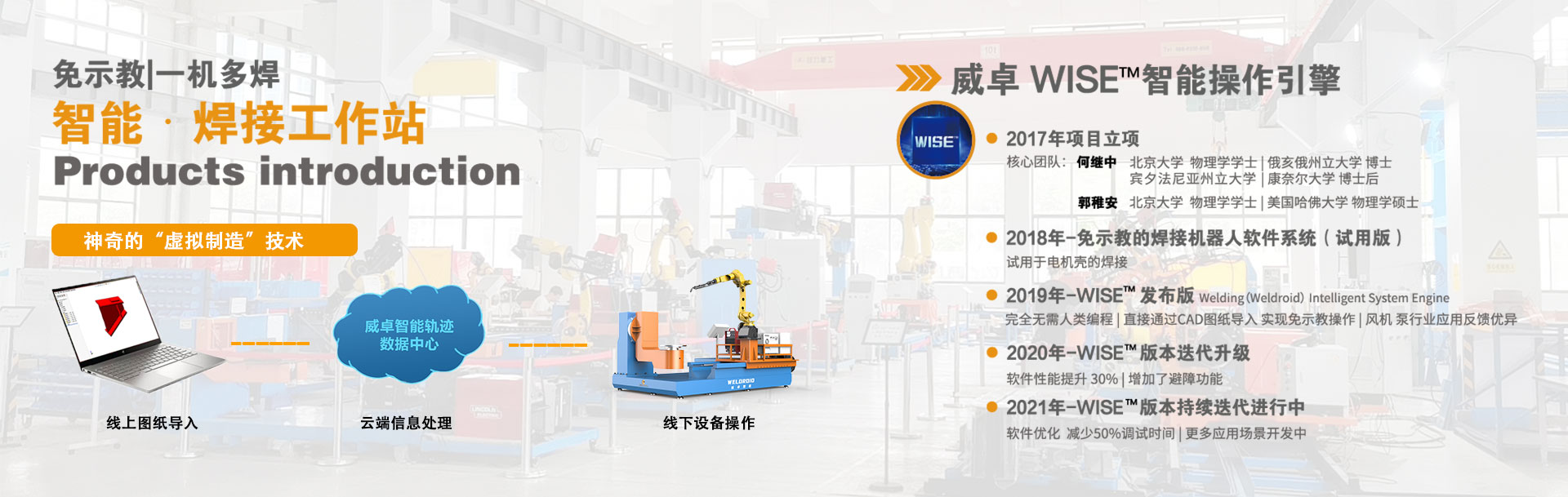 立即咨詢 現(xiàn)在聯(lián)系我們:0510-85384033無錫威卓智能機(jī)器人有限公司成立于2017年,是無錫市政府引進(jìn)的科技領(lǐng)軍型高新技術(shù)企業(yè),公司研發(fā)團(tuán)隊(duì)80余人,我們堅(jiān)持自主創(chuàng)新,利用自主開發(fā)的虛擬制造技術(shù)對傳統(tǒng)焊接行業(yè)進(jìn)行升級改造。 公司主推的工業(yè)風(fēng)機(jī)系列-智能焊接工作站產(chǎn)品,具有免示教、實(shí)時(shí)跟蹤、簡易工裝、傻瓜式操作等優(yōu)點(diǎn),真正幫助企業(yè)解決了招焊工難,用工成本高,焊接質(zhì)量不穩(wěn)定等問題。